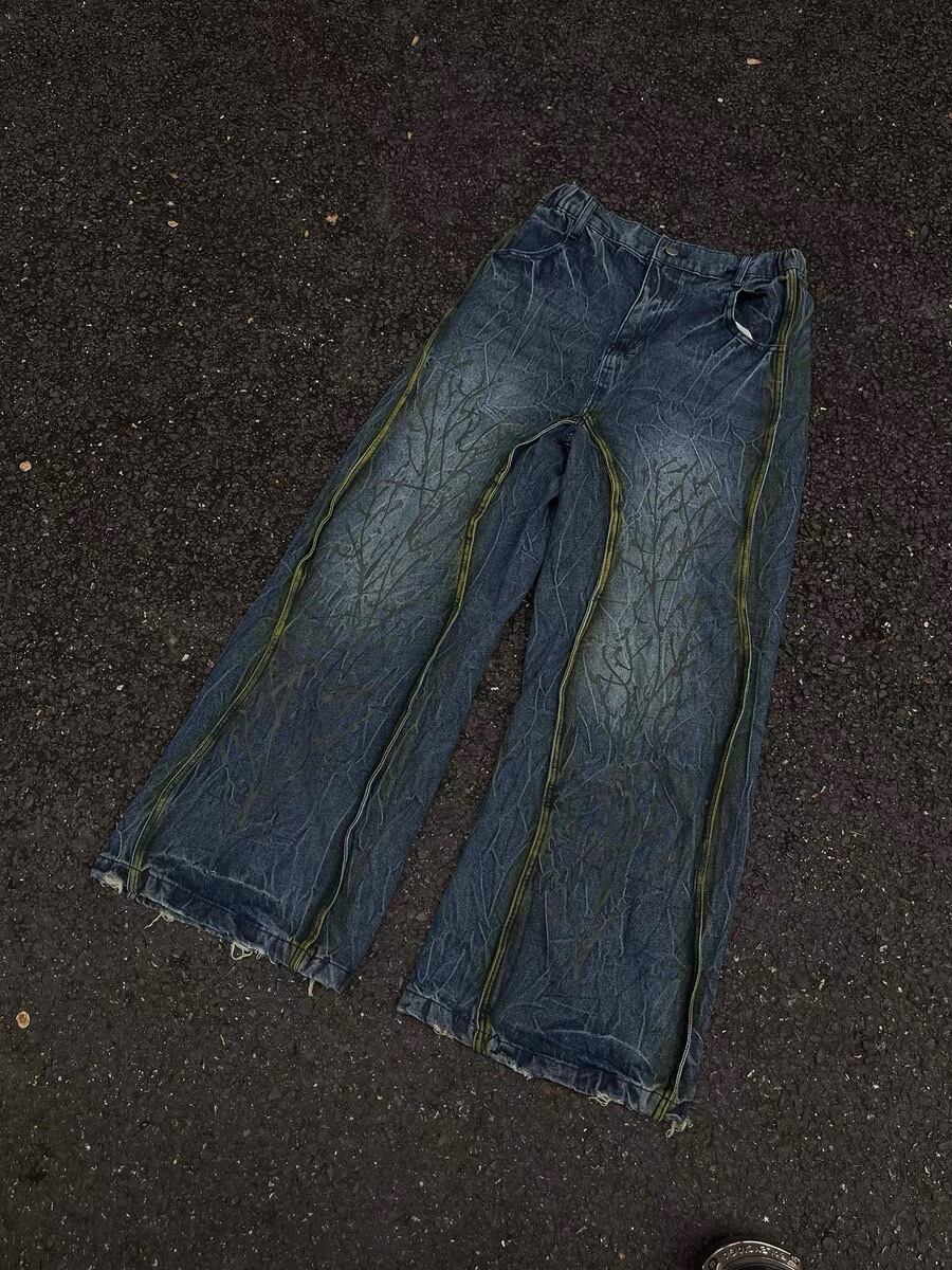 tree branch pattern washed jeans [P044]