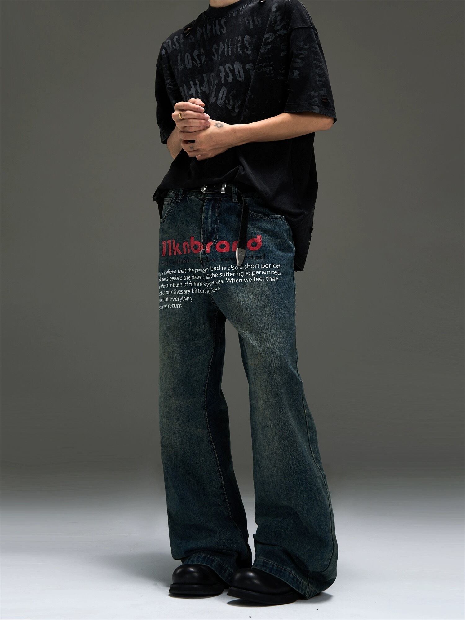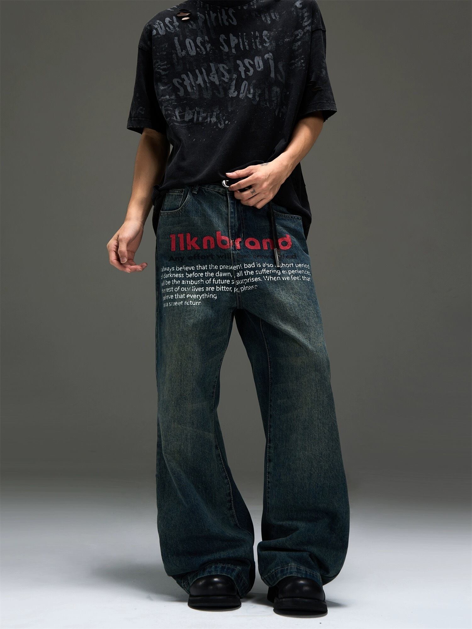 MaxDstr Front Letter Slogan Print Jeans [P089]