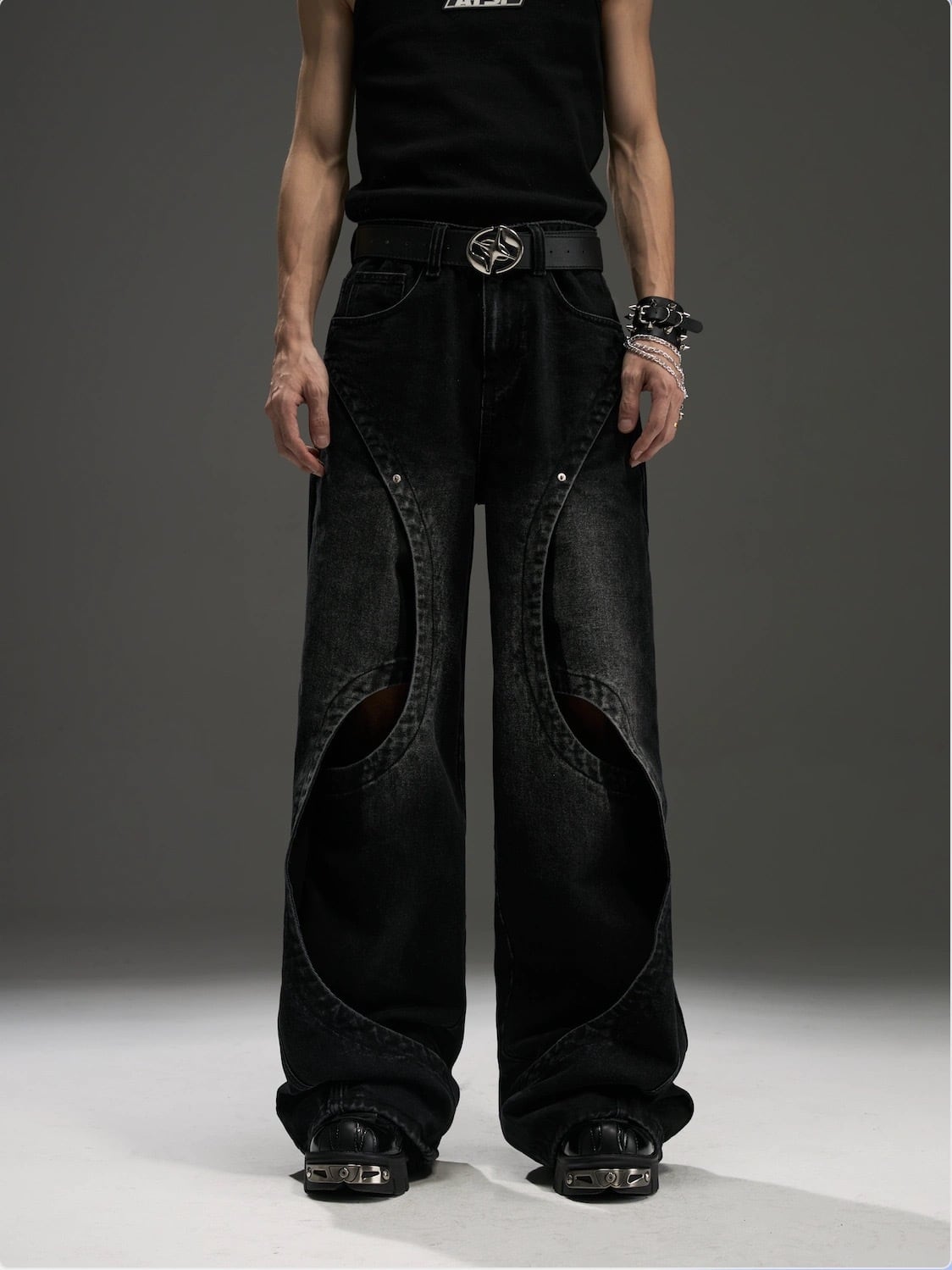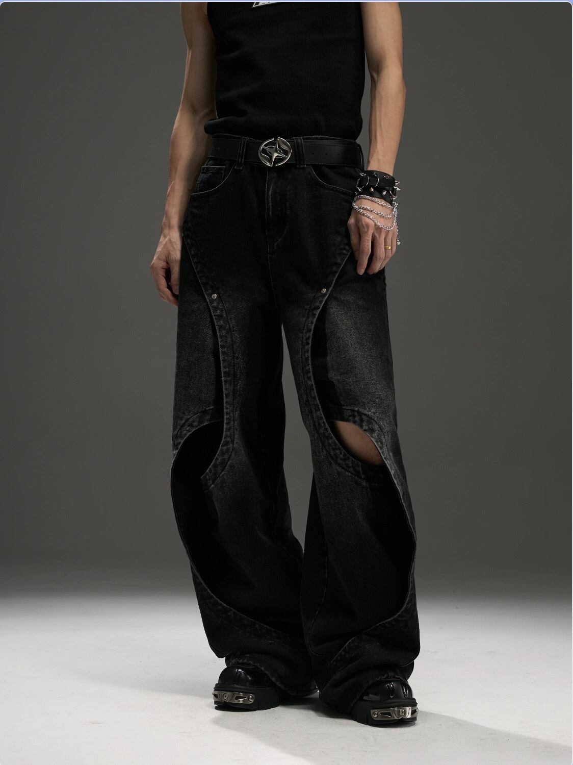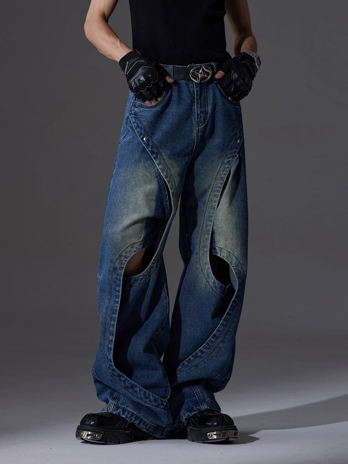 Original Design Ribbon Splicing Vintage Washed denim [P099]