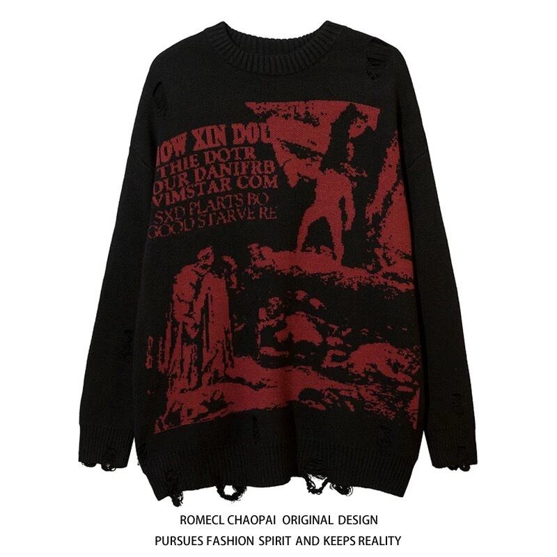 ROMECL Lazy Style Hip-Hop Distressed Knit Sweater [K002]